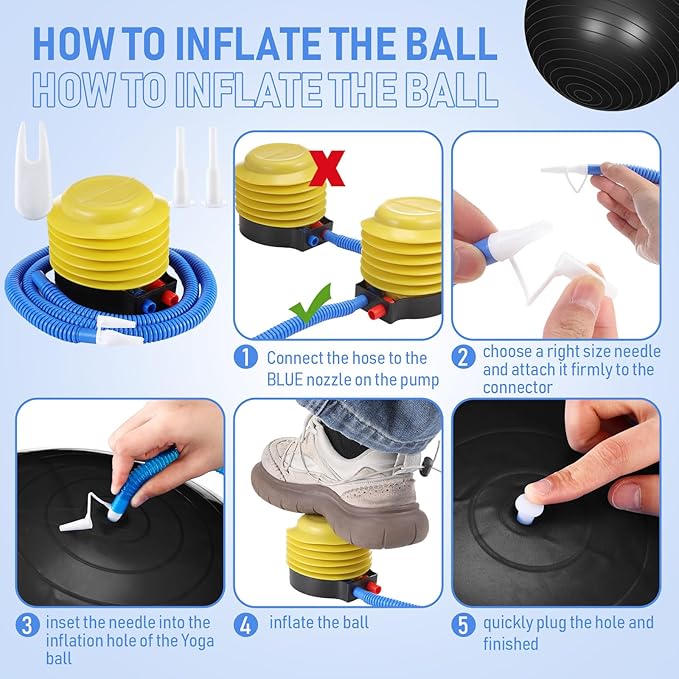 - Anti Burst and Slip Resistant: our fitness ball is made of durable PVC material, firm and strong enough against breakage, deformation and fracture; What's more, the outside of the gym ball is threaded, non slip and easy to grip, helps reduce potential risks; Please note that the explosion proof design can withstand high pressure, but it is not resistant to puncture pointed objects