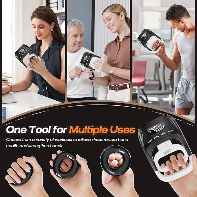 - [2-in-1 Grip Strength Tester & Trainer] Instantly switch between precision testing with the digital dynamometer (400lb max) and power-building using the ergonomic resistance ring. Perfect for athletes and fitness goals - test your grip strength, then train for measurable gains.