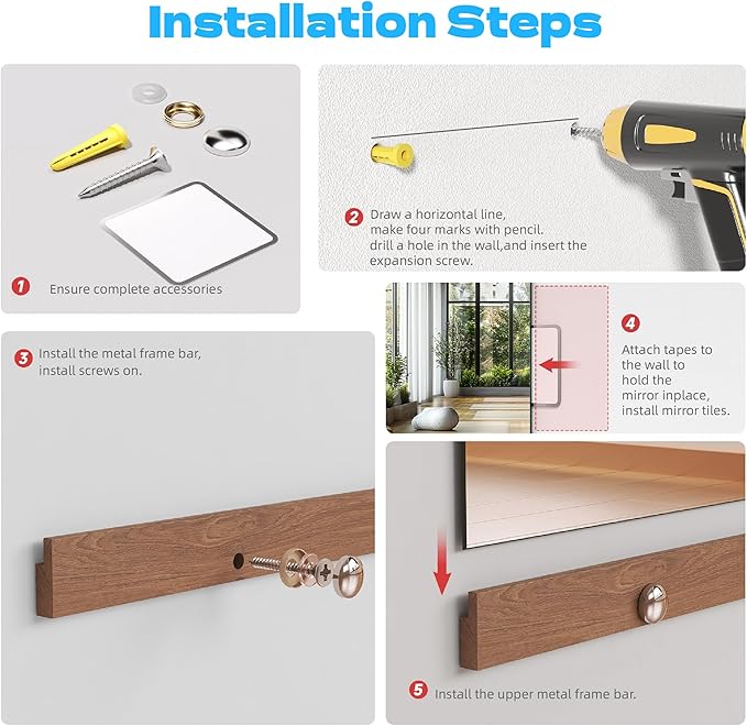 - Easy to Install:It's easy to install this wall gym mirror. Just check the instruction manual and do it step by step. It provides flexibility for different home and gym setups