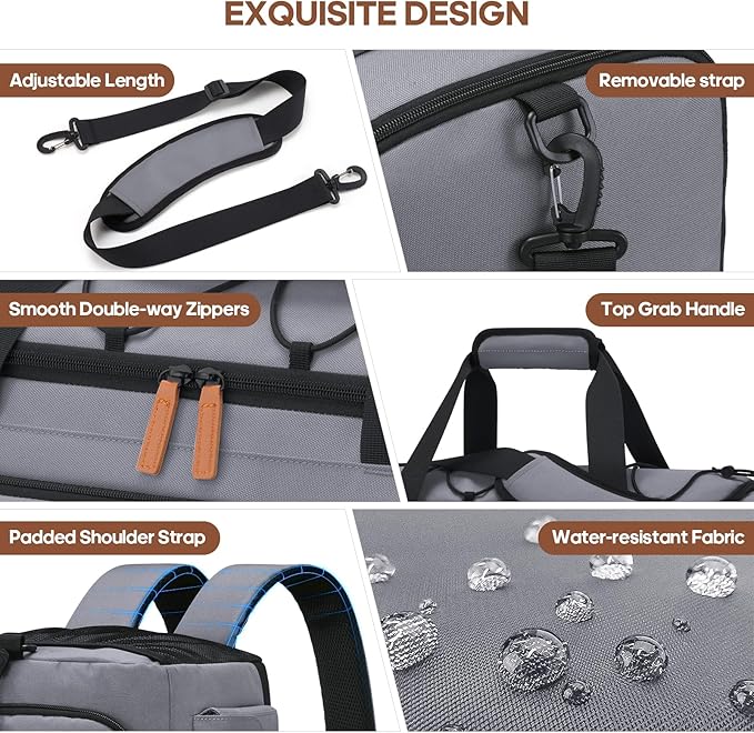 - Large Capacity with Smart Organization: Equipped with a laptop compartment (fits up to 13.3 inches), an independent shoe compartment, and multiple zippered pockets, this weekender bag helps keep all your essentials neatly organized, making it ideal for both short and long travels.