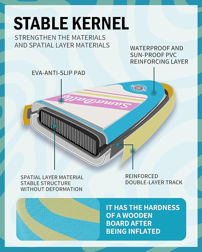 - Spacious & Enjoyable: SamaDally Candy Star series inflatable stand-up paddle boards are 1 to 2 inches wider than other similar products. 34in paddle surface is extremely spacious. Both beginners and paddleboards enthusiasts can find their own water - based fun on this SUP and enjoy a relaxing time.