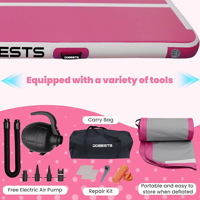 DOBESTS Inflatable Air Gymnastics Mat Tumbling Mat Tumble Track Gymnastics Training for Kids Home 6.6 feet 10 feet 13feet 16feet 20feet 4/8inch Thick for Cheerleading Dance Yoga Cheer Water With Pump