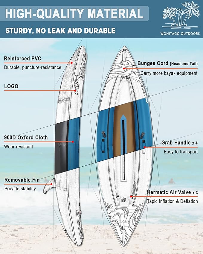 - MUST HAVE FOR OUTDOOR ENTHUSIASTS ---Choose WONITAO, enjoy a happy journey of water sports with your family, whether you're exploring the coast, racing down a river, or enjoying a peaceful lake, our kayaks are the perfect choice for your next adventure