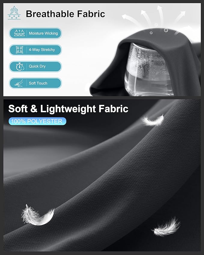 • Quick Dry & Moisture-Wicking: Crafted from quick-drying, moisture wicking fabric that effectively wicks away sweat, ensuring you stay dry and comfortable throughout the day