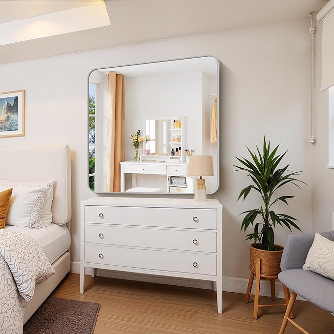 - Large and Luxurious Design: Transform your bathroom with this squared 42 x 42 inch mirror. Its expansive size adds instant atmosphere and elegance, balancing stunning decor with essential practicality.