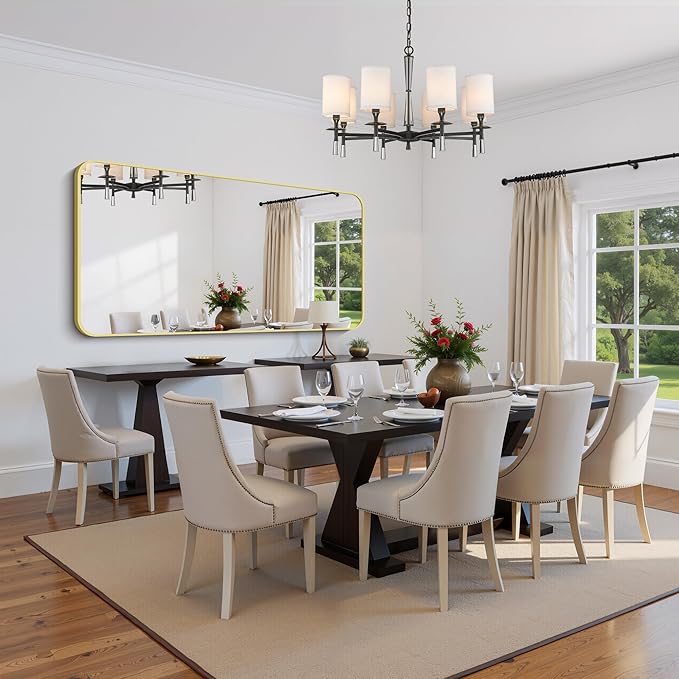 - Elegant Rounded Corners & Premium Safety: Featuring a sleek gold metal frame with softly contoured rounded corners. This sophisticated design combines modern elegance with enhanced safety, eliminating sharp edges while adding a luxe minimalist finish. The rich black frame elevates any decor, creating a visually expansive effect that brightens spaces and amplifies the sense of openness.
