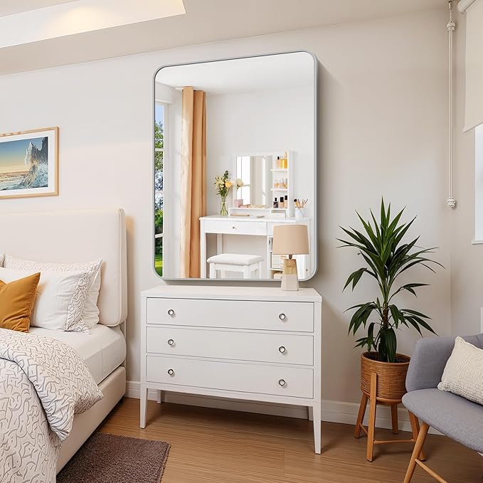 - Elegant Rounded Corners & Premium Safety: Featuring a sleek silver metal frame with softly contoured rounded corners. This sophisticated design combines modern elegance with enhanced safety, eliminating sharp edges while adding a luxe minimalist finish. The rich black frame elevates any decor, creating a visually expansive effect that brightens spaces and amplifies the sense of openness.