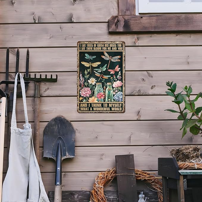 Dragonfly Decor And I Think To Myself What A Wonderful World Vintage Metal Tin Sign Decorative Plaque Poster 12 * 8inch