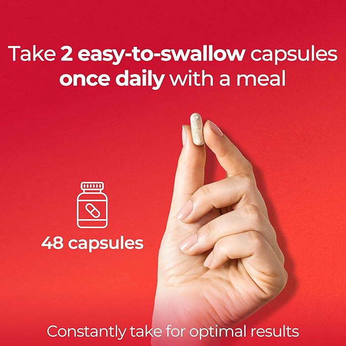 - Suggested use: Take 2 capsules daily with a meals. For best results, combine with a balanced diet, regular physical activity, and mindful lifestyle habits