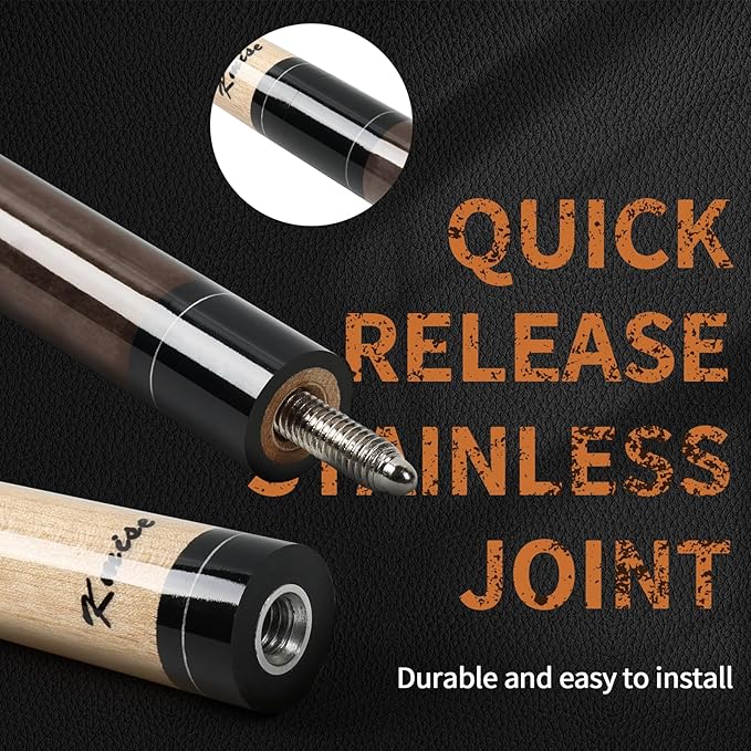 Kmise Professional Low-Deflection Pool Cue Stick, 58'' Canadian Hard Maple Wood Billiard Cue, 13mm Leather Tip, 3D Anti-Slip Grip, Precision Control for Adults/Beginners/Pros