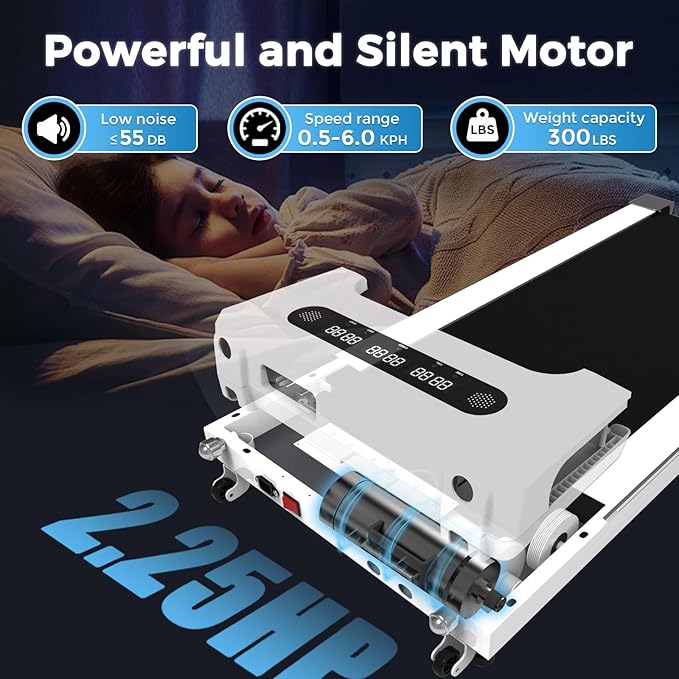 - P01-P12 Programs and Easy to Move: Start the walking pad treadmill and enter the "P" program directly, accelerating fat burning through preset variable speed running programs. The built-in transport wheels make this under desk treadmill easy to move and store, saving space.