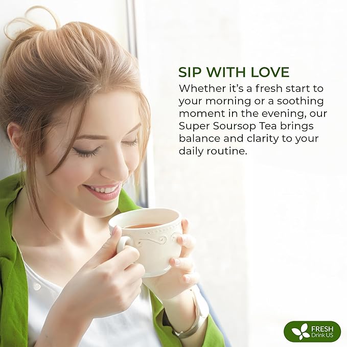 FreshDrinkUS, Super Soursop Herbal Tea β 40 Tea Bags | Soursop, Ginger, Turmeric, Lemongrass, Cinnamon, Black Pepper & Peppermint | Caffeine-Free, Natural Flavor, Plant-Based Blend | Sugar-Free