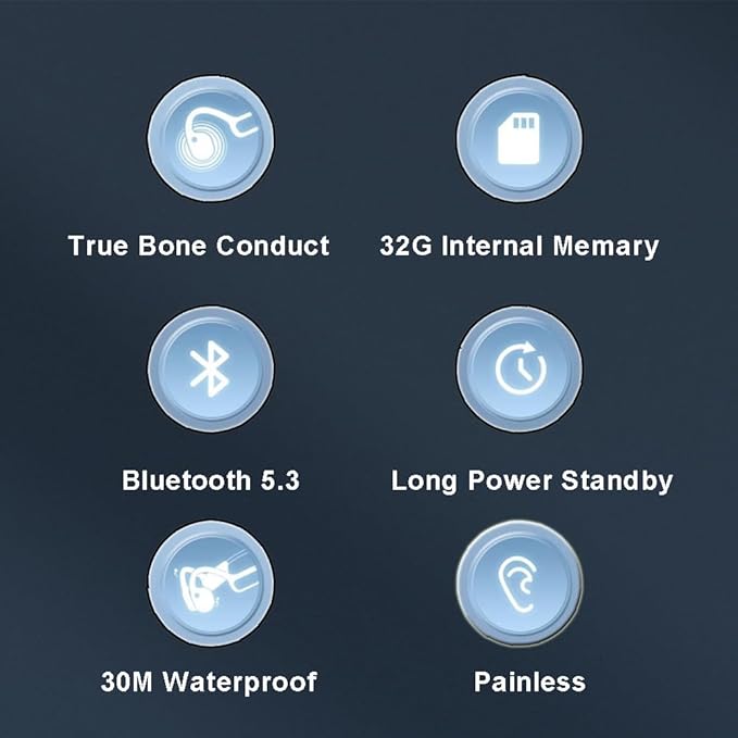- 【True Bone Conduction】 Bone conduction headphones transmits sound to the inner ear through cheekbones by vibration. Open Ear design help the ears to get rid of any ear uncomfortable for long time music enjoy. Avoid noise interference during sound transmission and maintain the fidelity of the sound.