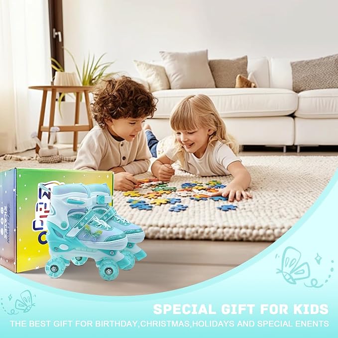 - 🎅【A lifelong Gifts for Girls】With every step they learns and grows,these butterfly beginner roller skates become a loving treasure from parents. It is a great way to control the body and improve children's balance and coordination while having fun, spark a love for skating—ideal for birthdays, holidays,Christmas. WOW, it will exceed your kids' expectations!