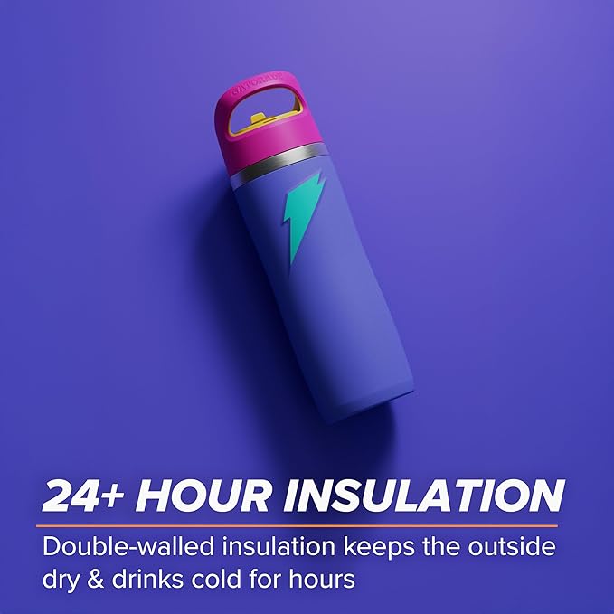 - Gatorade Stainless Steel Overtime with 24+ Hour insulation: Double-walled insulation keeps the outside dry & drinks cold for hours