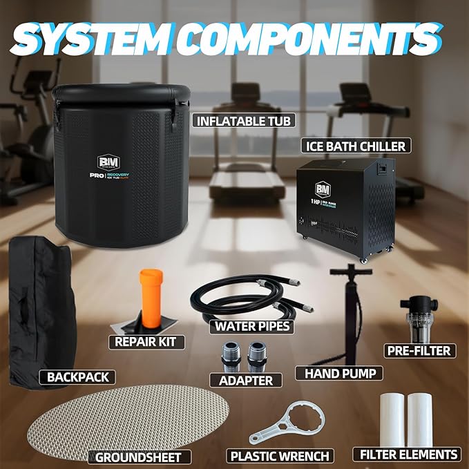 - Complete Recovery System & Accessories: Includes a high‑pressure pump, groundsheet, PTFE tape, piping, seals, wrench, adapter, quick connectors, plus a replaceable filter. Everything you need for fast setup, ongoing maintenance, and a seamless cold‑or‑warm plunge experience