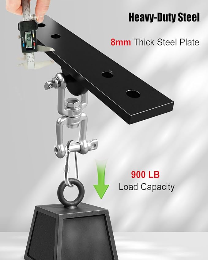 - 900 LB Load Capacity: Heavy bag hanger constructed from premium high-hardness steel with an 8mm thick base plate, this punching bag hanger supports up to 900 pounds of dynamic weight. Perfect for boxing, Muay Thai, kickboxing, or any high-impact training. Solid build ensures stability even during your most intense sessions