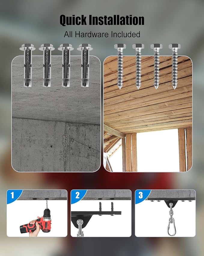 - Multi-Purpose Mounting: More than just a punching bag hanger—it also works great for yoga hammocks, gymnastic rings, sling swings, and rotating chairs. A versatile solution for fitness enthusiasts, athletes, or families looking to upgrade their home setup
