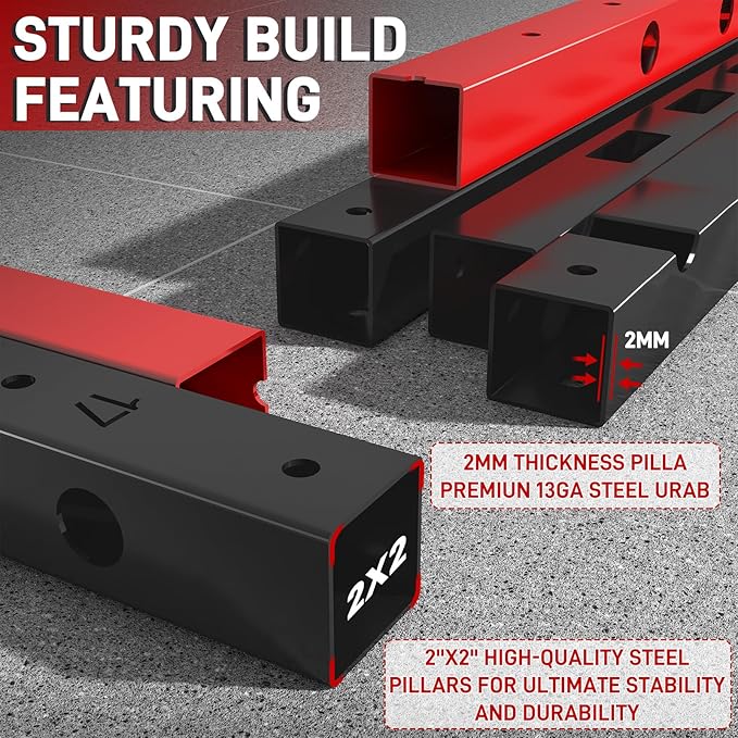 - Robust Build for Heavy Duty Use: Crafted with premium materials, this 2000LBS Power Cage Squat Rack ensures durability and stability during your garage workouts, allowing you to push your limits safely.