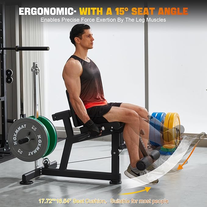 - 【Truly Commercial-Grade Professional Leg Extension Machine】The unique cable and aluminum pulley system offers consistent 1:1 resistance throughout the entire movement, differing from traditional lever-operated machines and promoting stronger and clearer muscle growth. The aluminum pulleys provide a smooth experience during seated leg extensions and leg curls. Unleash the beast with the GXMMAT Leg Exercise Machine.