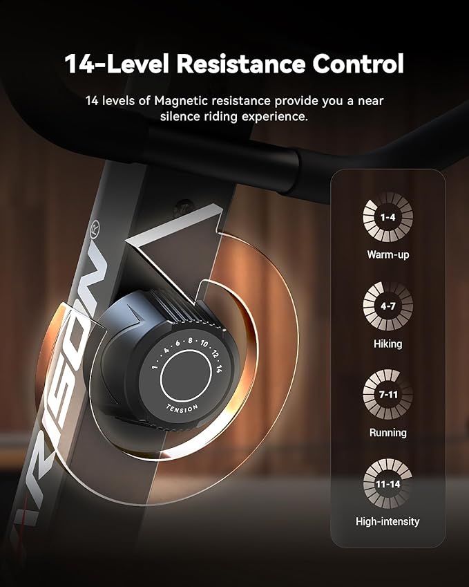 - 【HARISON Exclusive MUTE Magnetic System】HARISON Recumbant exercise bike equipped with 28 lbs flywheel and an exclusive and cutting-edge magnetic resistance system, which provides 14 levels of smooth magnetic resistance options by adjutable tension knob for an easier or more difficult workout, ensuring that every pedal stroke is whisper-quiet and effortlessly smooth. No more distractions – just pure focus on your fitness goals. Virtually no maintenance is required.
