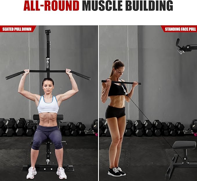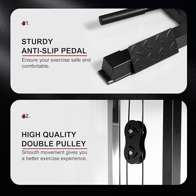 • 【Multi-functional LAT Tower】Set up with high and low pulleys for a variety of exercises, including seated rowing, seated and standing pull downs, biceps curls and other movements. Fully exercise your whole body muscles through training to meet your fitness needs.