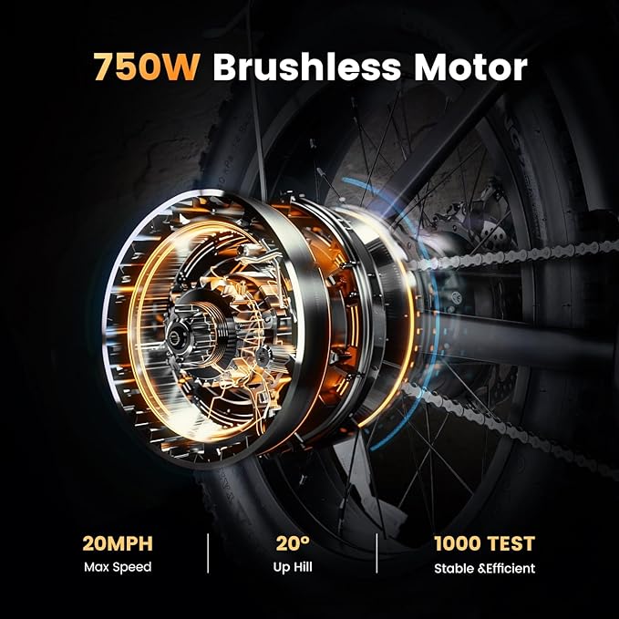 - Feel Unmatched Power:The Cycrun Electric Bike Is Equipped with a High-Performance 750W Brushless Motor, Capable of Reaching a Top Speed of 20 MPH. This e bike Paired with 20-Inch Puncture-Resistant Tires, Offering Enhanced Traction and Grip. Powerful 60Nm Torque Ensures Effortless Traversal Across Various Terrains